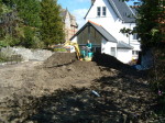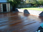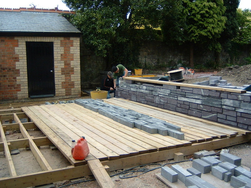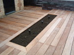 After excavating and levelling the plot with our mini digger, underground channels were laid to house the drainage pipes, armoured electric cables and water irrigation system. A split-level decking area was created using Oroko hardwood deckboards cut to the same dimensions as the kitchen floorboards and secured with invisible fixings so that when the bi-fold glass doors opened the kitchen merged seamlessly into the garden. LED mains powered lighting was installed to illuminate the decking areas, pathways and planting areas, and electric sockets were cleverly hidden around the garden within the new stone walls.